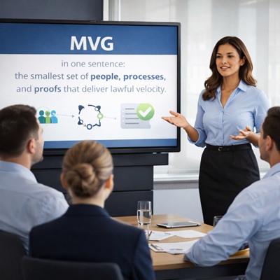 MVG in one sentence: the smallest set of people, processes, and proofs that deliver lawful velocity.